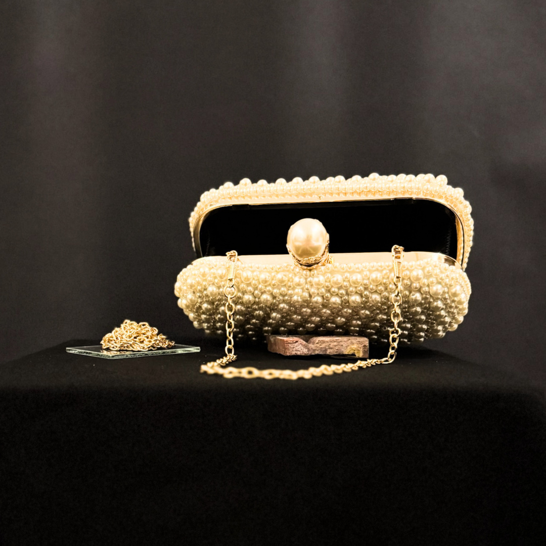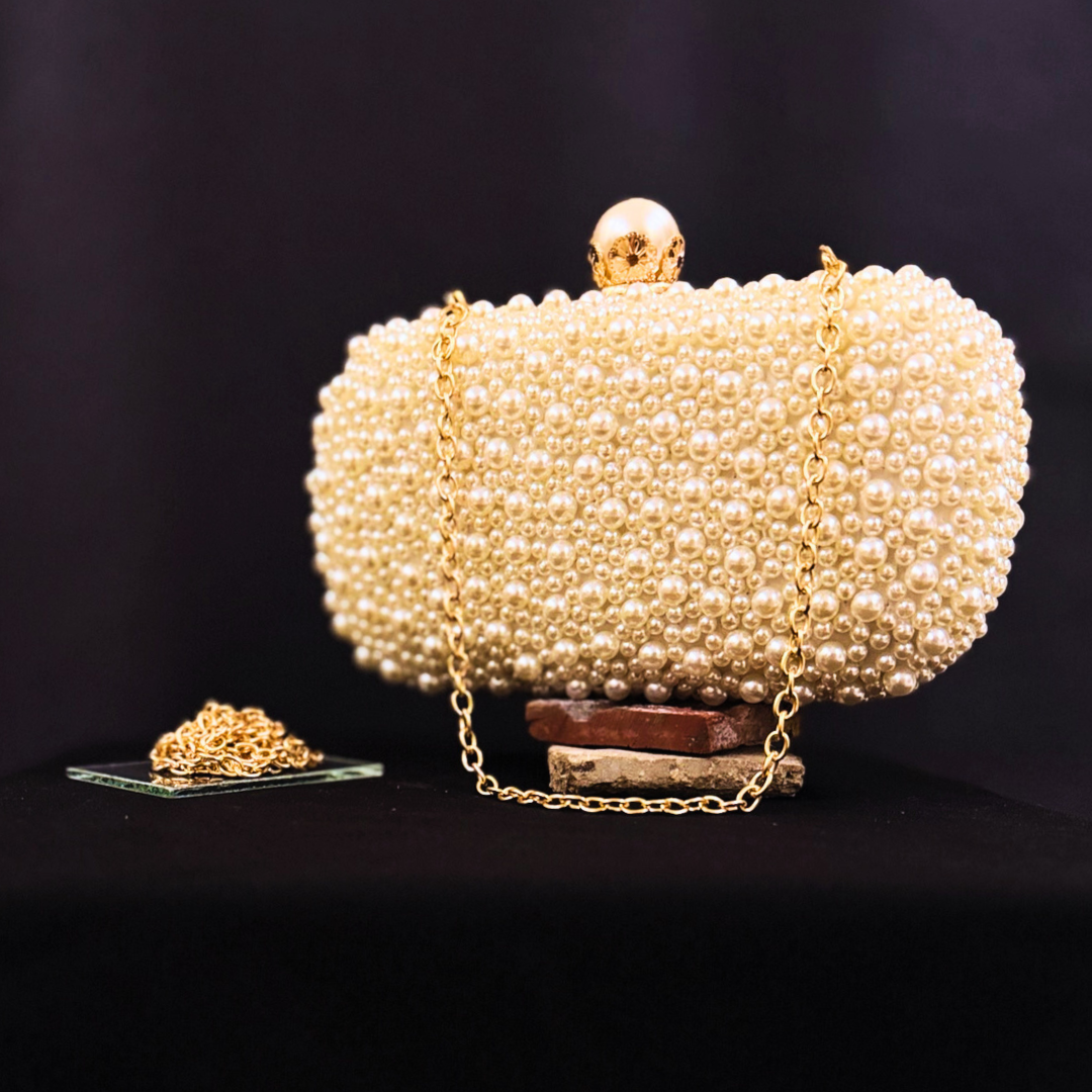 Got a special event? Amara is the perfect clutch, covered in glowing pearls for a classy look.