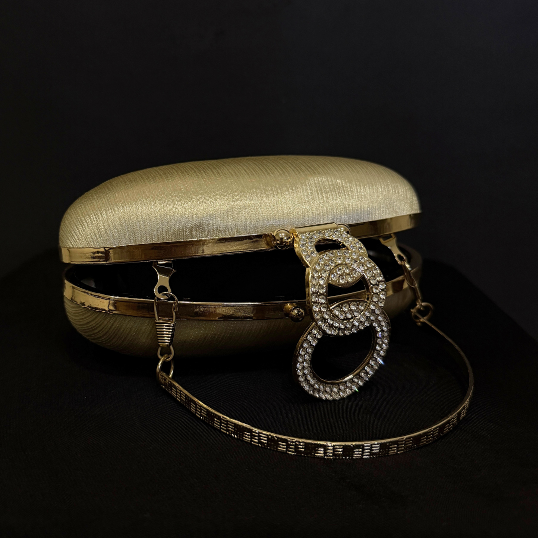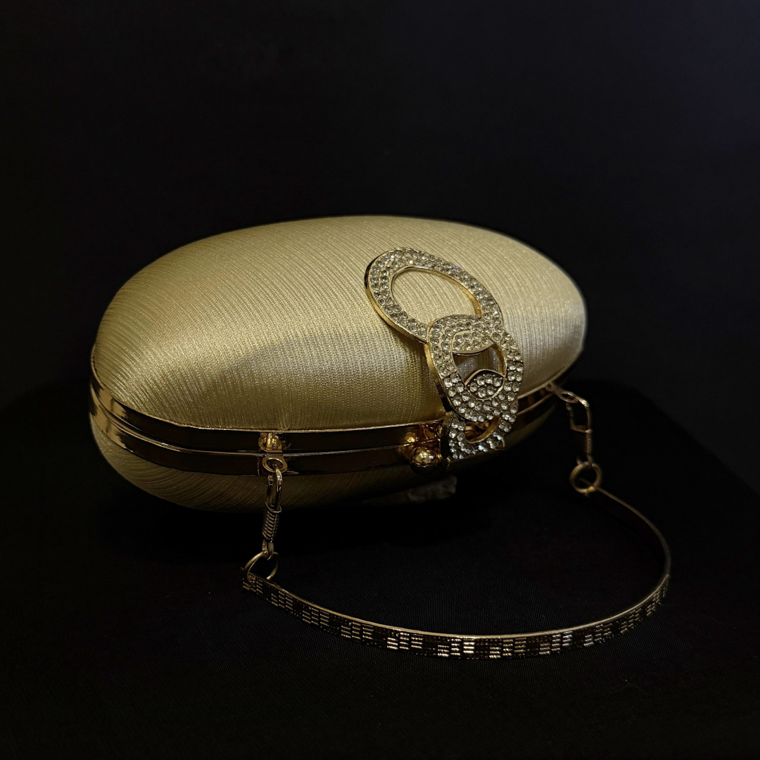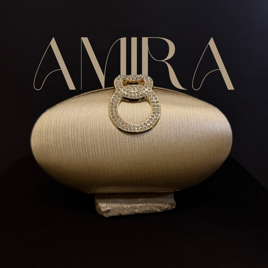 Amira ek golden satin finish clutch hai jisme minimalism aur royalty ka perfect fusion hai. Iska unique double-ring crystal clasp ek regal touch deta hai, jo aapke look ko instantly elevate karta hai. Lightweight aur comfortable to carry.