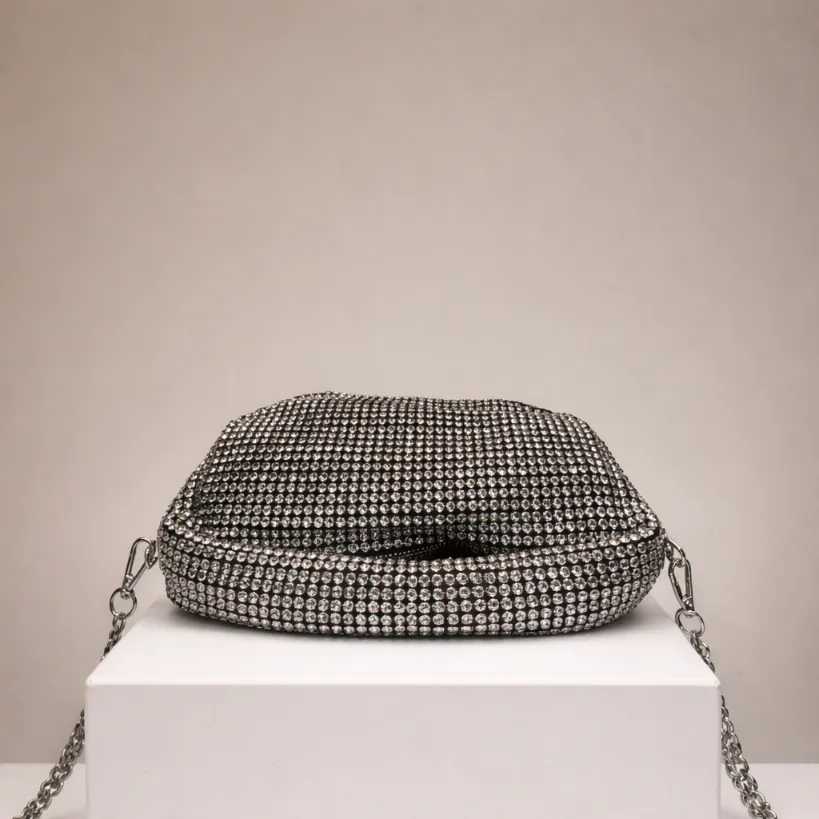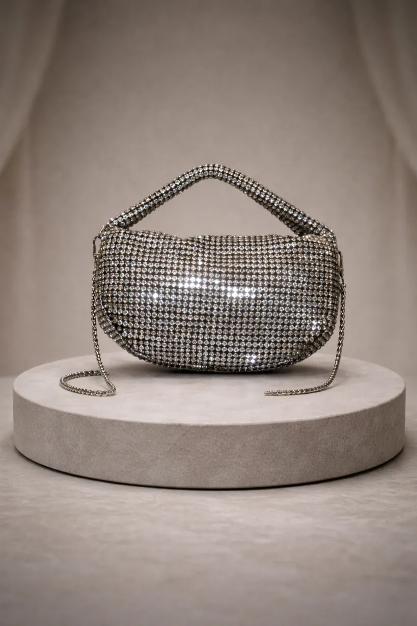 Designed with a sleek zip closure to keep your essentials safe, this crystal beauty is the perfect companion for evening parties and special occasions. Elegant, secure, and effortlessly glamorous.