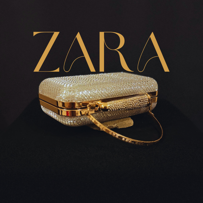 Add a trendy touch to your party outfit with the Zara Shining Crocodile-Textured Clutch!
